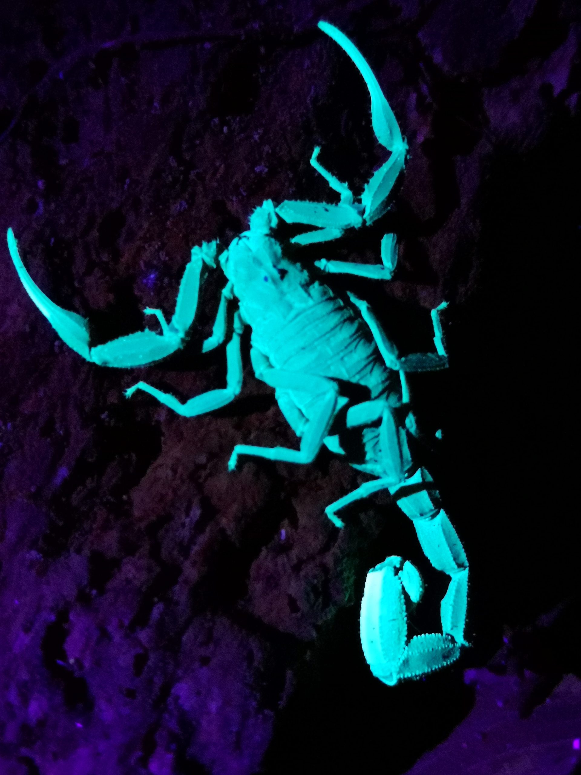 Tiskita’s night tour guide has a black light to look for scorpions. Rubber boots and walking sticks are available at the lodge, free of charge.