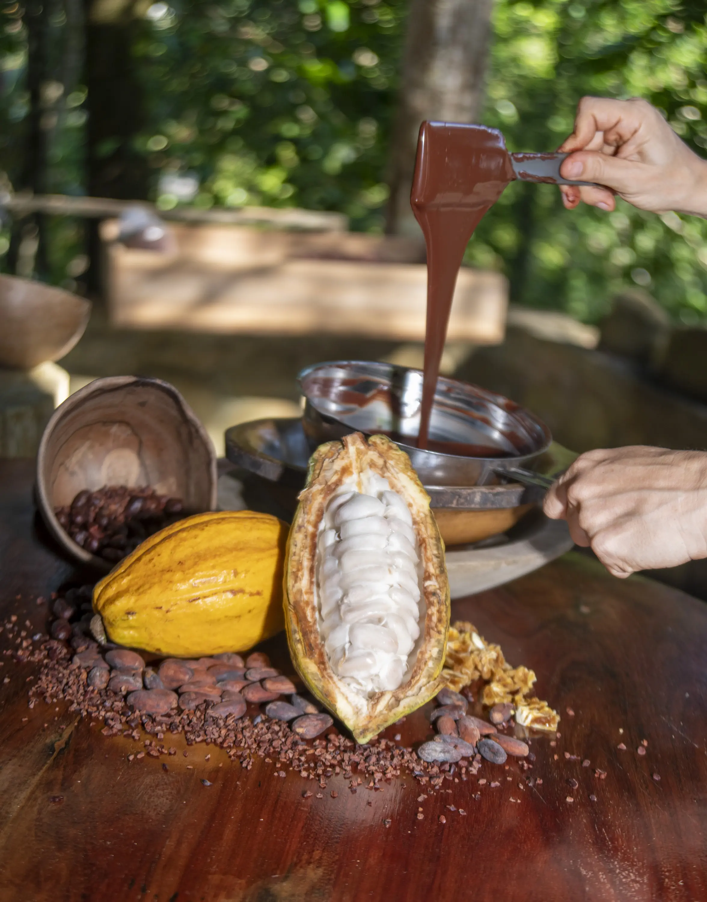 Learn all about growing, harvesting, sun drying, roasting, grinding and tempering chocolate in this beautiful jungle setting.